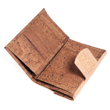 39.00€Cork note wallet, with leather lining. It has a spring top snap coin compartment.